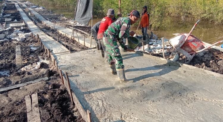 Jalan yang sebelumnya berupa tanah dan mudah rusak kini mulai dikeraskan menggunakan beton cor. Pengecoran dilakukan secara bertahap dengan pengawasan ketat dari personel Satgas serta melibatkan masyarakat setempat sebagai tenaga pendukung.