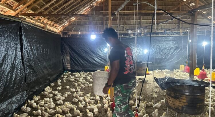 Satgas TMMD Reguler ke-124 Kodim 1012/Buntok aktif merawat ayam potong di lokasi Ketahanan Pangan, Jalan Urbanus Marcun, Desa Sababillah, Kecamatan Dusun Selatan, Kabupaten Barito Selatan. Perawatan ayam potong ini menjadi bagian dari program ketahanan pangan yang bertujuan meningkatkan ketersediaan protein hewani bagi masyarakat setempat.