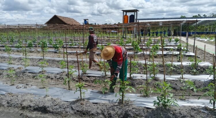Barito Selatan, 28 Mei 2025 — Satgas TMMD ke-120 Kodim 1012/Buntok melakukan perawatan tanaman sayuran di lokasi Ketahanan Pangan, Jalan Urbanus Marcun, Desa Sababillah, Kecamatan Dusun Selatan, Kabupaten Barito Selatan. Kegiatan ini bertujuan meningkatkan produktivitas hasil panen sekaligus mendukung ketahanan pangan masyarakat.
