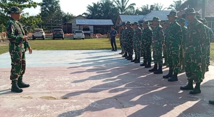 Lamandau – Menjelang dimulainya aktivitas harian program TNI Manunggal Membangun Desa (TMMD) Reguler ke-125, Pasi Teritorial (Pasi Ter) Kodim 1017/Lamandau Kapten Inf Eko Yunianto memimpin apel pagi di lokasi kegiatan, Desa Batu Kotam, Kecamatan Bulik, Sabtu (02/08/25).