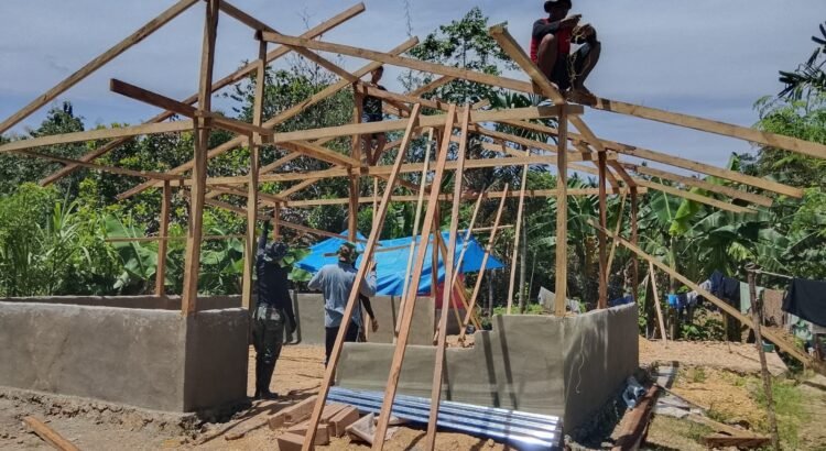 Personel Satgas TMMD bersama warga setempat tampak bekerja keras mempercepat pembangunan Rumah Tidak Layak Huni (RTLH) yang menjadi salah satu sasaran fisik program tersebut.