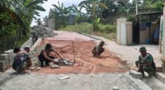Dalam kegiatan tersebut, personel dari kedua institusi bahu-membahu mengangkut dan menyusun material bangunan secara manual. Kerja sama lintas instansi ini menjadi kunci percepatan pengerjaan sasaran fisik di lapangan.