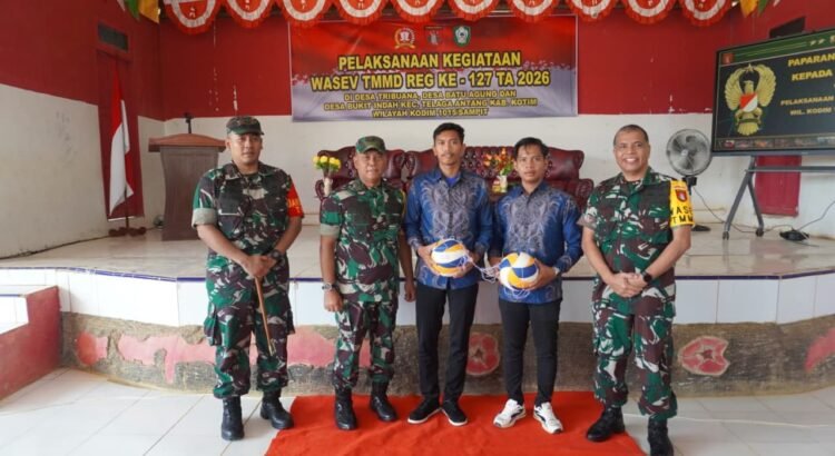 Kotawaringin Timur – Dalam rangkaian kunjungan kerja Pengawasan dan Evaluasi (Wasev) TMMD ke-127 Kodim 1015/Sampit, Tim Wasev Mabesad melaksanakan kegiatan non fisik berupa penyerahan bantuan alat olahraga kepada Karang Taruna di Balai Desa Tri Buana, Kecamatan Telaga Antang, Selasa (03/03/2026).