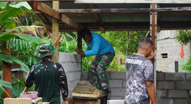Pada hari tersebut, personel Satgas bersama warga fokus pada pemasangan batako untuk dinding bangunan. Dengan kerja sama yang solid, proses pembangunan berjalan lancar dan sesuai target yang telah direncanakan.
