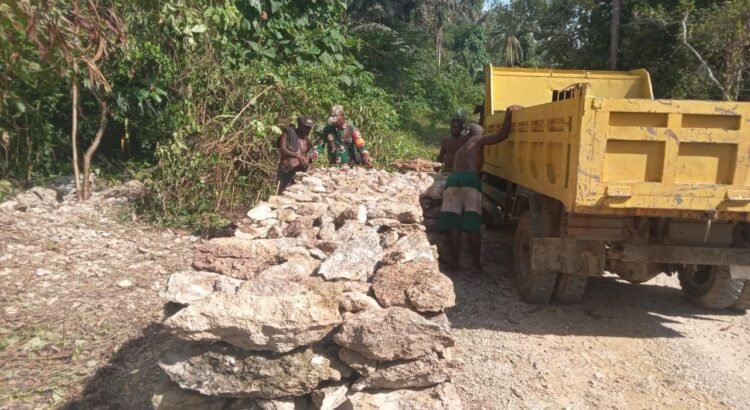 Kaimana – Dalam rangka mendukung percepatan pembangunan jembatan, Satgas TMMD 127 Kodim 1804/Kaimana kembali melaksanakan pengiriman material batu ke Kampung Marsi pada 28/02/2026.