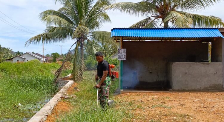 Pembersihan dilakukan secara menyeluruh, mulai dari memotong rumput liar, menyapu area halaman, hingga merapikan saluran air agar lingkungan tetap terjaga kebersihannya. Aktivitas ini menjadi simbol nyata sinergi antara TNI dan masyarakat dalam menjaga fasilitas umum yang telah dibangun bersama.