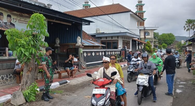 Ditengah aktivitas warga, tampak pula aparat keamanan baik Babinsa, Bhabinkamtibmas dan pecalang serta Linmas terjun langsung hadir memberikan pengawalan dan pengamanan.